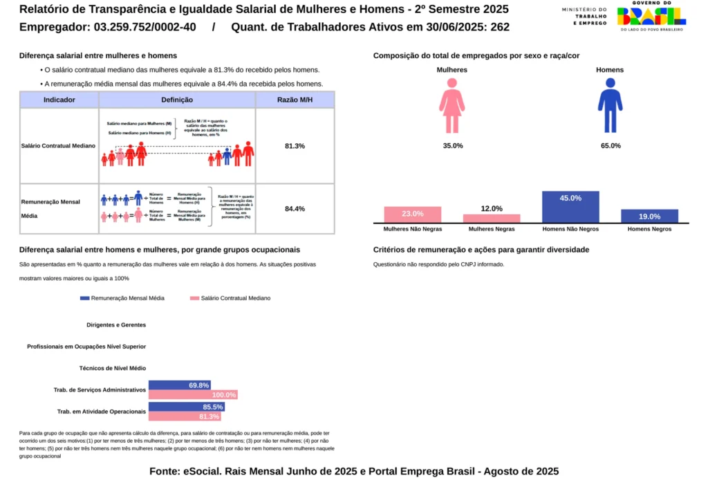 Relatório de Transparência e Igualdade Salarial – G3 Serviços Terceirizados – 2º Semestre 2025